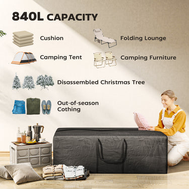 Outsunny 840L Outdoor Patio Cushion Storage Bag, UPF30+, Waterproof 600D Oxford Heavy Duty Furniture Storage Bag, Black
