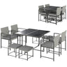 Outsunny 9 Pieces Wicker Patio Dining Set with 4 Armchairs, 4 Stools, Tempered Glass Top, Removable Cushions, Light Grey
