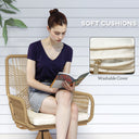 Outsunny Outdoor Swivel Dining Chairs Set of 2, Patio Rattan Chairs with Soft Cushions for Garden, Backyard, Poolside, Khaki