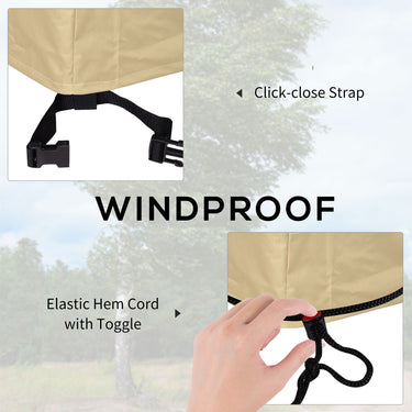 This Outsunny patio covers for outdoor furniture is just what you need to protect your outdoor settings. This furniture cover can cover a normal size 3-seater chairs or bench from rain, snow, dust and any other bad weathers. The click-close strap and plastic buckles to secure the patio chair cover in the windy days can stay in place. In addition to its waterproof function, this outdoor chair covers can also be cleaned easily and all you need is a piece of wet cloth to clean it.