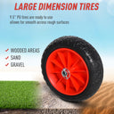 - • 9.5" Large PU tires that are ready to use, allows for smooth movement across rough surfaces