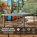 - • Materials: Galvanized Steel, Polyethylene Rattan, Polyester