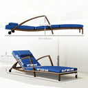 Outsunny Set of 2 Wicker Chaise Lounge Chair Outdoor Patio Lounger with 5 Adjustable Back, Wheels, Cushion and Armrests, Blue