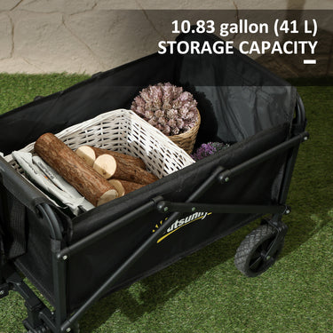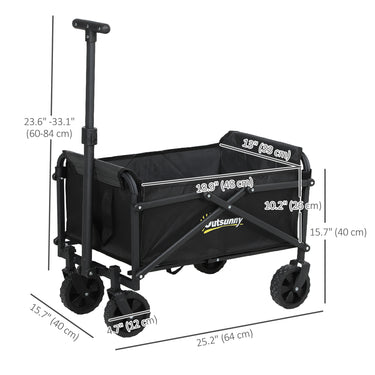 Outsunny Collapsible Folding Garden Cart, Heavy Duty Lawn Wagon with Universal Wheels and Adjustable Handle, Black