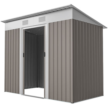 Outsunny 7' x 4' Outdoor Storage Shed, Metal Garden Tool Storage House Organizer with Lockable Sliding Doors and Vents for Backyard Patio Lawn, Charcoal Grey