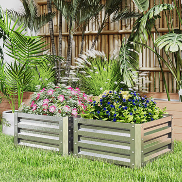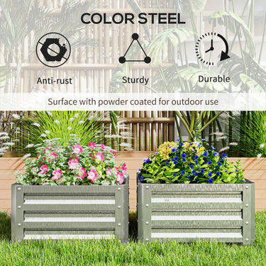 Outsunny 2' x 2' x 1' 2-Pieces Raised Garden Bed with Galvanised Steel Frame for Vegetables, Flowers, Herbs, Silver