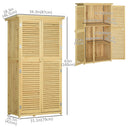Give your gardening tools and outdoor essentials storage and organization with vertical storage sheds from Outsunny. We made sure to have plenty of space with three shelves at the bottom and a larger space on top. The slanted asphalt roof doesn't allow for water to pool, while the material ensures no water seeps into the tool cabinet. The two wooden doors of the backyard storage have a wooden lock to secure your tools. Check out the outdoor tool storage and get organized in your yard.