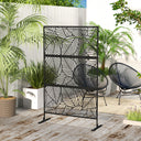 Outsunny 6.5FT Decorative Outdoor Divider, Metal Privacy Screen with Stand, Large Leaf Style, Black