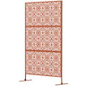 Outsunny Decorative Outdoor Privacy Panel with Stand, Freestanding Metal Outdoor Divider for Garden, Backyard, Deck, Brown