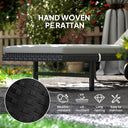 - • Powder-coated steel frame wrapped in PE rattan for longevity