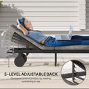 Outsunny PE Rattan Tanning Chair, Outdoor Patio Lounger with 5-Level Adjustable Back, Wheels and Cushion, Grey