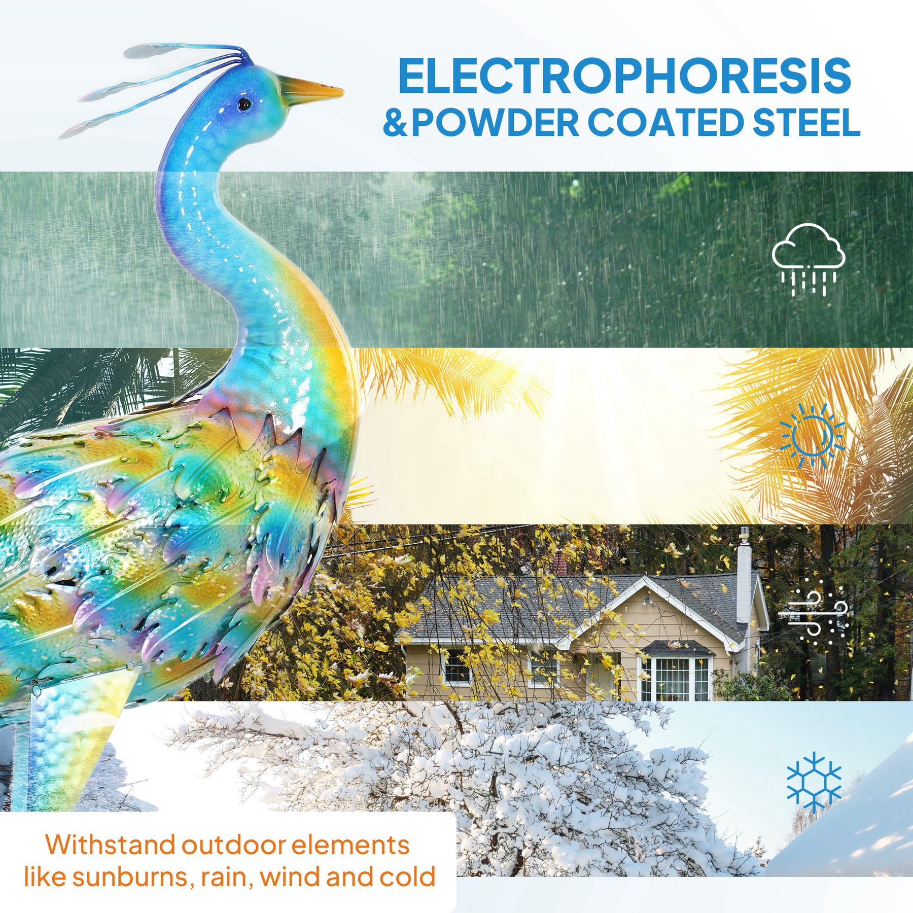Are you bored in the garden? Are you looking for an eye-catching decorative piece? Let Outsunny yard art sculpture light up your garden with bright colours and vivid details. Built to withstand outdoor elements, this steel lawn statue undergoes electrophoresis and powder coating processes, while two U-shaped ground stakes enhance its stable standing.