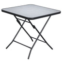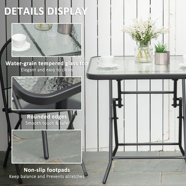 Family and friends gathered around with this outdoor bistro table from Outsunny, and It will create a beautiful backdrop to all your outdoor gatherings this season. The square table has a metal frame with a powder-coated finish and a water-grain tempered glass top for easy cleaning with a damp cloth. Features a middle umbrella hole for a parasol in place, keeping your outdoor activities cool from the sun's rays. Enjoy outdoor time with family and friends.