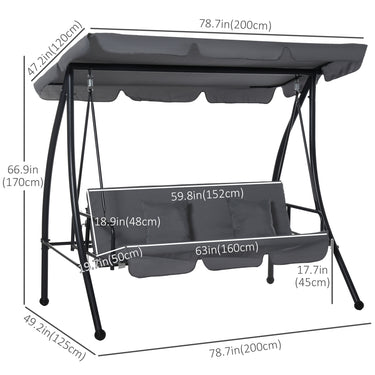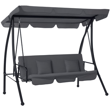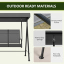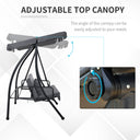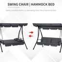 Outsunny Patio Swing Chair, 3 Person Convertible Hammock, Outdoor Swing Lounge Bed, Cushioned with Tilt Canopy, Dark Grey