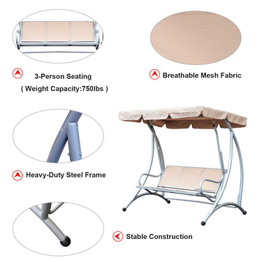 Outsunny 3 Seat Metal Swing Chair Hammock w/ Canopy Cover Heavy Duty Patio Garden Outdoor Beige