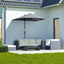 Outsunny 6.6 x 6ft Half Patio Umbrella Outdoor Parasol with Double-Sided Canopy, Crank Handle, Base for Garden, Balcony, Grey