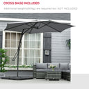 Outsunny 10ft Cantilever Patio Umbrella Offset Parasol with Crank Handle, Cross Base for Garden, Deck, Dark Grey