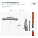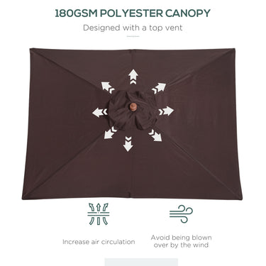 Outsunny 6.6x5ft Square Market Parasol, Wooden Patio Umbrella with Tilt Mechanism and 6 Bamboo Ribs, Garden Sunshade, Wine Red