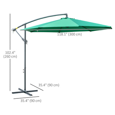 Outsunny 10ft Offset Patio Umbrella with Base, Garden Hanging Parasol with Crank, Banana Cantilever Umbrella Sun Shade, Green
