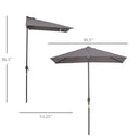 Outsunny 8ft Half Round Umbrella Outdoor Balcony Parasol Patio Garden Outdoor Window Sun Shade w/ 5 Ribs