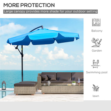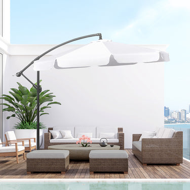 Outsunny 9FT Offset Hanging Patio Umbrella Cantilever Umbrella with Easy Tilt Adjustment, Cross Base and 8 Ribs for Backyard, Poolside, Lawn and Garden, White
