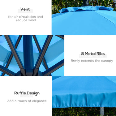 This stylish pool umbrella with stand from Outsunny is a piece you'll love having outside. The overhanging design means you can keep shaded anywhere, without the hassle of a central pole getting in your way - bringing shade to large tables, sofas, bistro sets, etc. The core structure is made from steel, so it's tough and sturdy, connecting to the canopy with 8 ribs for extra support. It can provide plenty of shade, keeping you cool on hot summer days but also creating a comfortable atmosphere.
