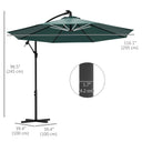 Outsunny 10ft Outdoor Cantilever Hanging Offset Umbrella with Solar LED Lights, Crank, Cross Base, Aluminum Frame, Green