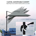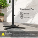 Stay protected and enjoy the sun all day with the Outsunny cantilever patio umbrella. Supported by eight steel ribs for enhanced strength, this offset patio umbrella with base features a convenient crank mechanism for smooth opening and closing. The tiltable design and 360° swivel allow you to adjust the shade to stay cool from any angle. Offering soothing shade all summer long, this offset umbrella is the great addition to your outdoor space for relaxation and comfort.