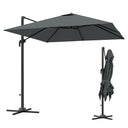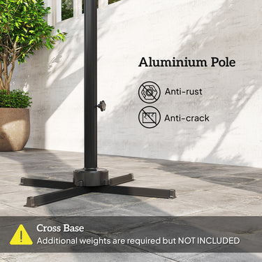 Outsunny 8 FT Aluminium Cantilever Patio Umbrella with 360° Rotation, Cross Base, Crank and Tilt for Garden, Patio, Dark Grey