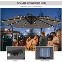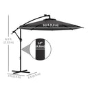 Outsunny 9.5' Offset Patio Umbrella Garden Parasol with Solar LED Lights and Weights, Dark Grey