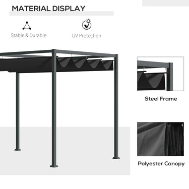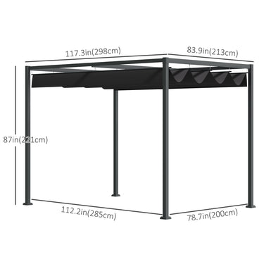 Outsunny 10x7ft Pergola with Retractable Roof Outdoor Patio Sun Shelter Garden Grape Tent Water-resistant Yard Shade Grey