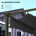This Outsunny modern pergola with retractable canopy is extra-large, allowing you to bring in a crowd without feeling crowded. It offers a retractable shade cover on top, giving you control of the elements. Keep the canopy closed to get rid of glare and stop sunburns underneath or open the top to let the sun shine. It's made of aluminum frame and features a set of ground stakes and expansions screw for all-terrain use. Get out, get comfortable, get Outsunny.
