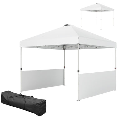 Outsunny 10' x 10' Pop Up Canopy Tent with 2 Half Sidewalls, UV50+ Height Adjustable Instant Sun Shelter, White