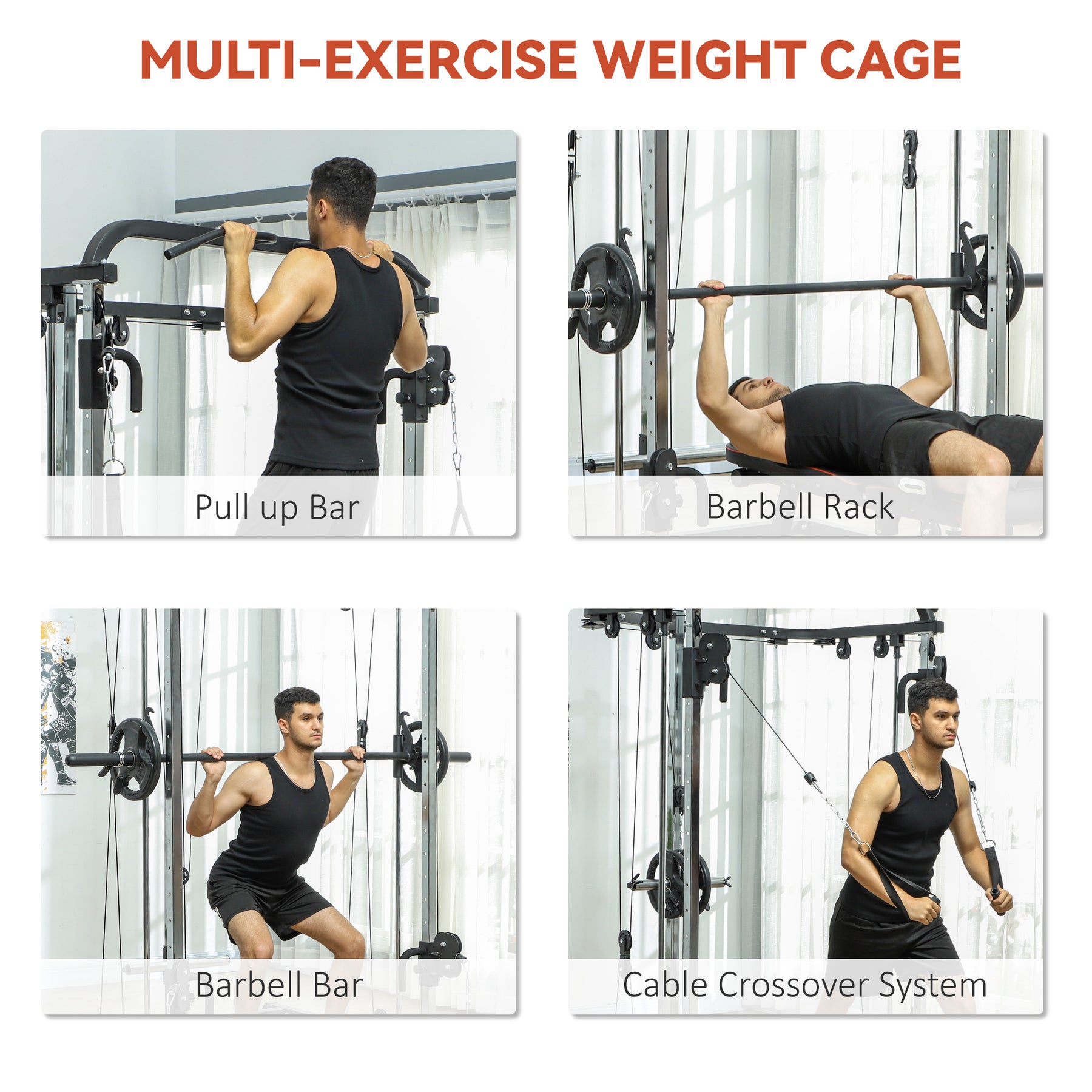 Transform your workout routine with the Soozier all in one gym machine, a versatile blend of a squat rack, cable crossover system, and pull-up station. Tailor your training with 16 adjustable barbell heights and a 15-position double pulley system to precisely target muscle groups. Upgrade your home fitness space into a professional gym effortlessly!