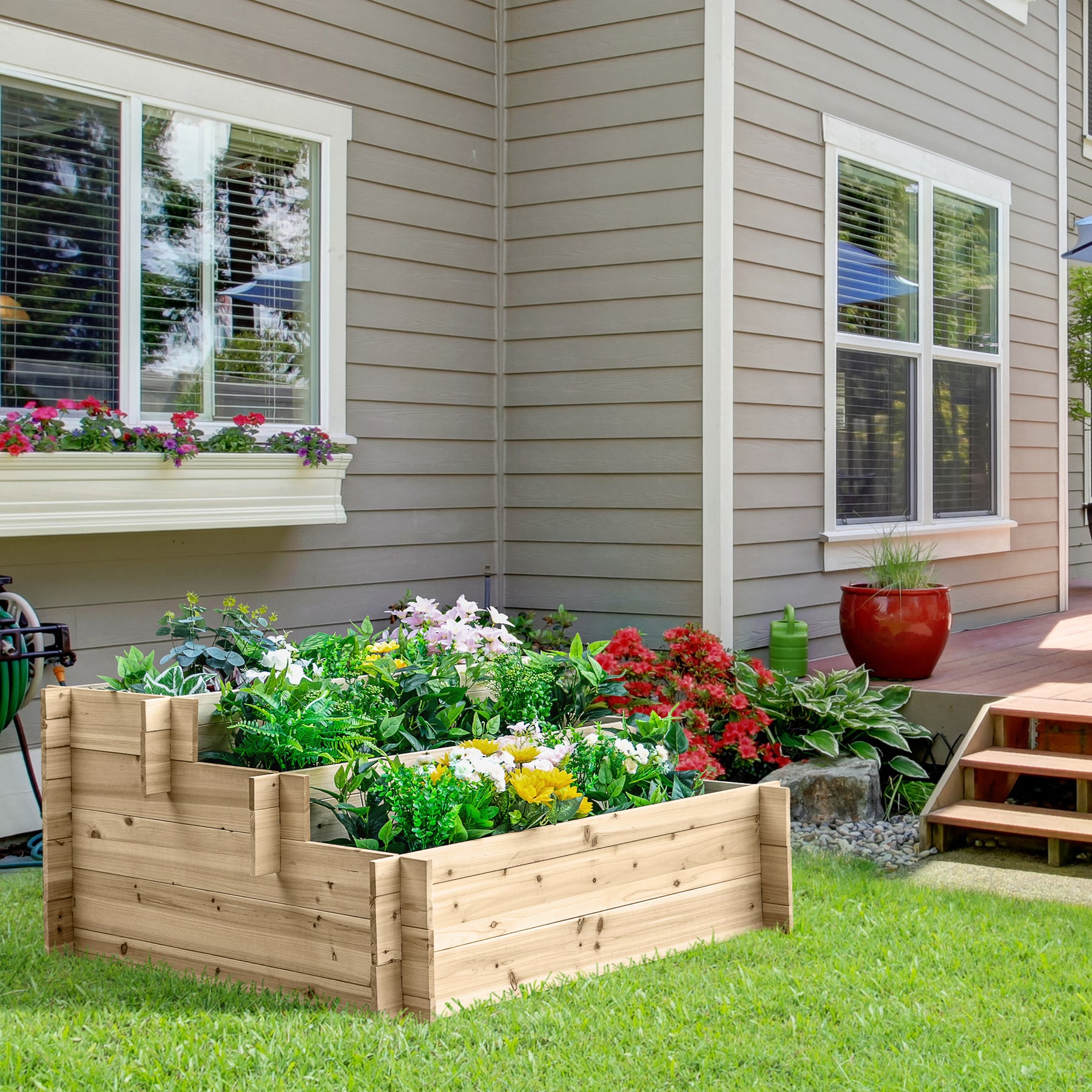 The growing kit from Outsunny will add vitality to your space. 3-tier design can give you enough room and separate space is better for plants with different growth cycles. Gradually elevated design takes full account of all kinds of root lengths and sizes. Without any screws and tools, it's easy to assemble. Built of fir, the plant box is stable and durable. Untreated surfaces are guarantee natural, no peculiar smell. Simple and rustic style is suitable for garden, balcony, lawn or yards!