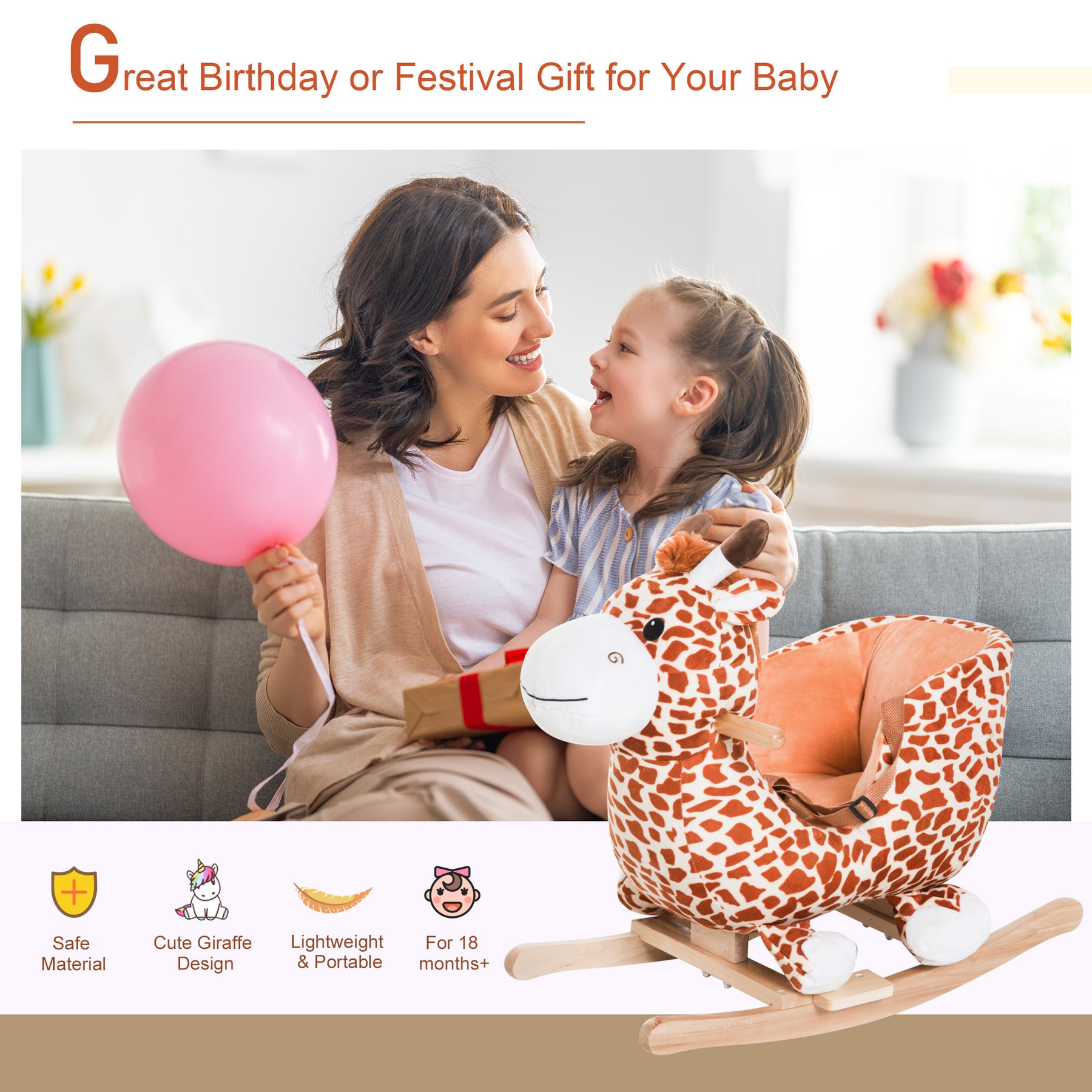 This Giraffe Theme rocking horse is ideal for kids’ play. The perfect unity of classic and comfort, With this colorful rocking horse you can have a unique plush character along with a comfortable saddle position for your child to have fun in. This horse is perfect as a permanent piece of toy furniture for any rooms and is sturdy enough to last for years. What a great way to bridge the generations between you and your child with a toy that you remember from your childhood.