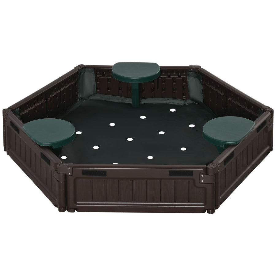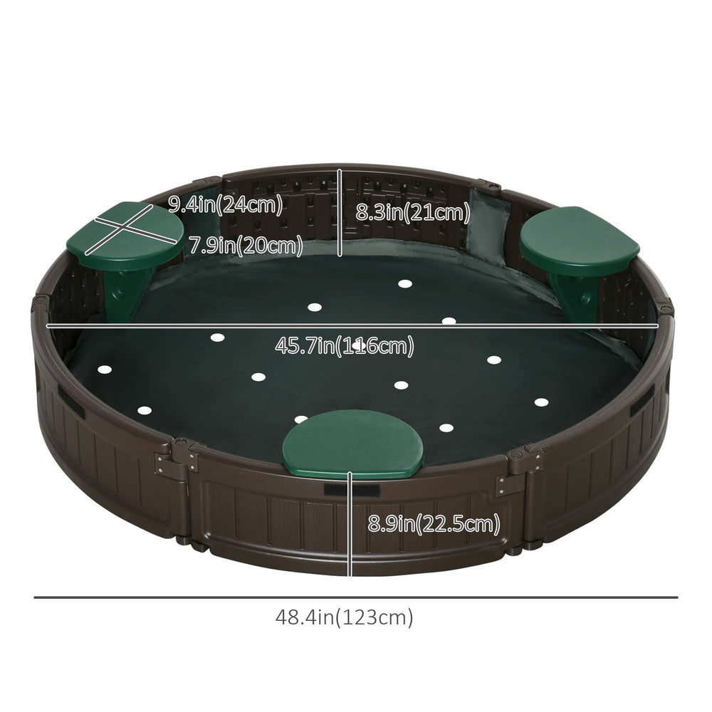 Outsunny Kids Sandbox with Cover, Seat, Sandbox Outdoor for Backyard, Brown