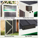 Keep your outdoor space tidier and less-odor with the Outsunny garbage bin shed, holding up to a 63.4-gallon (240L) trash bin. This outdoor garden shed features a ventilated design for better airflow and a lockable door for security. The 180° lifting lid allows for effortless disposal, keeping your garden clean and beautiful. Crafted with a galvanized steel frame, this outside storage shed withstands the elements, making it a reliable outdoor garbage storage solution.