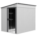 Outsunny 5x7 Garden Shed, Lean-to Metal Storage with Foundation, Sliding Door & 2 Vents for Garden Tools, White