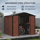 Outsunny 8' x 7' Outdoor Storage Shed, Galvanized Steel Metal Garden Shed with Lockable Doors, Floor Frame, Vents, Lock and Gloves for Backyard, Lawn, Patio, Teak