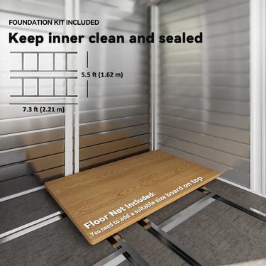 - • A floor foundation was included to prevent storage items from touching the ground directly