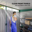 - • Its robust, galvanized steel construction ensures durability, while the water drainage system protects your belongings from bad weather