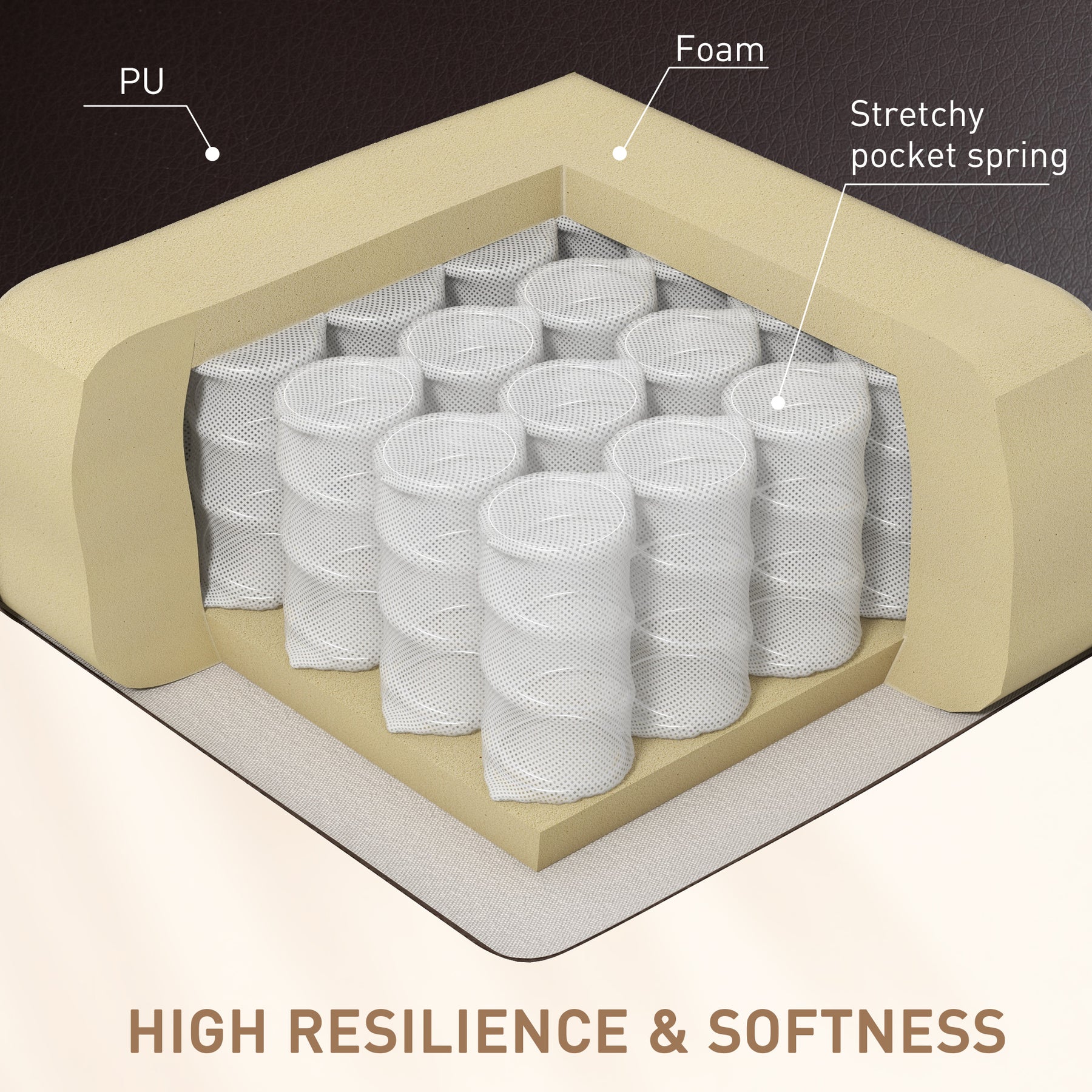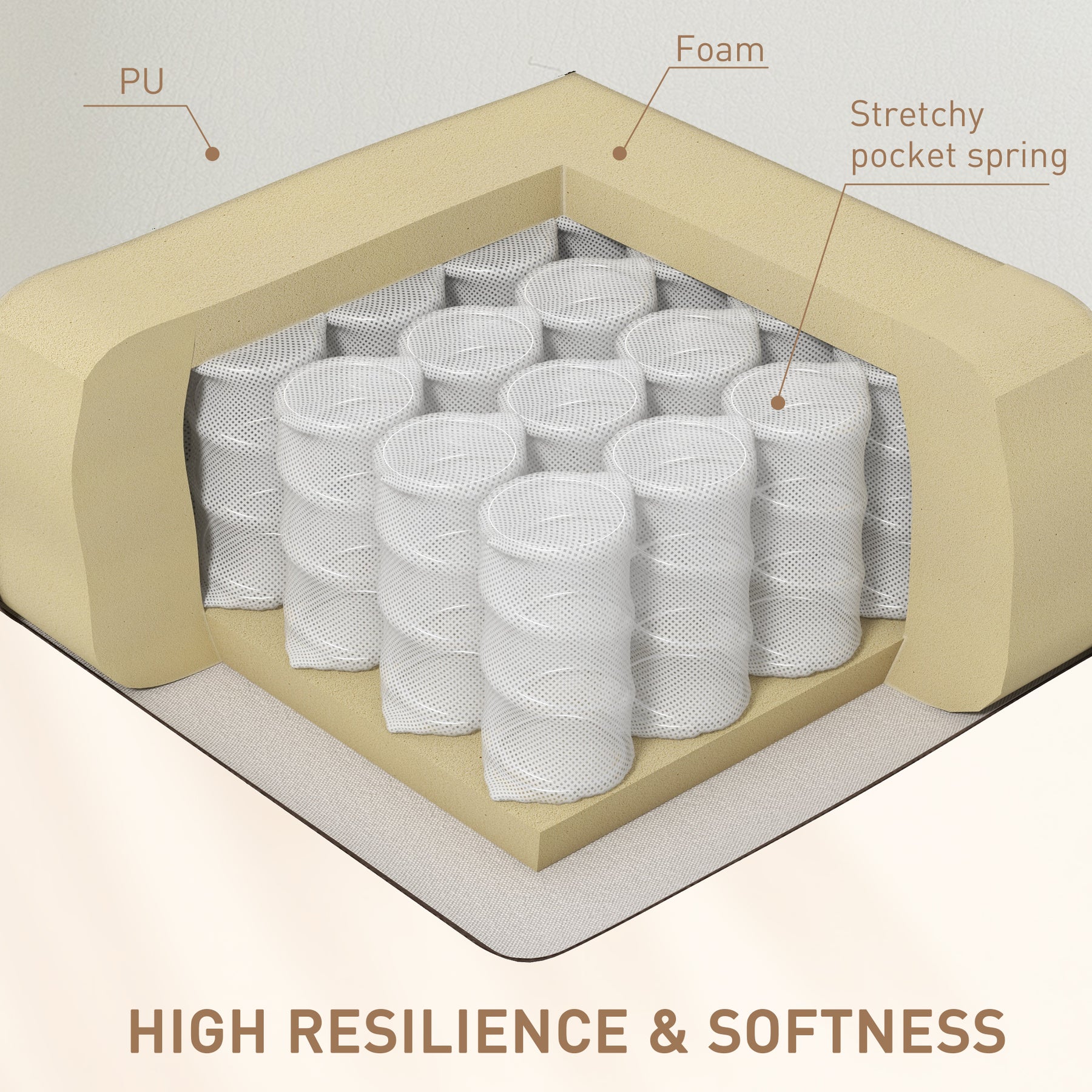 - • Overstuffed, high-density foam padding with a pocket spring system offers a cozy experience
