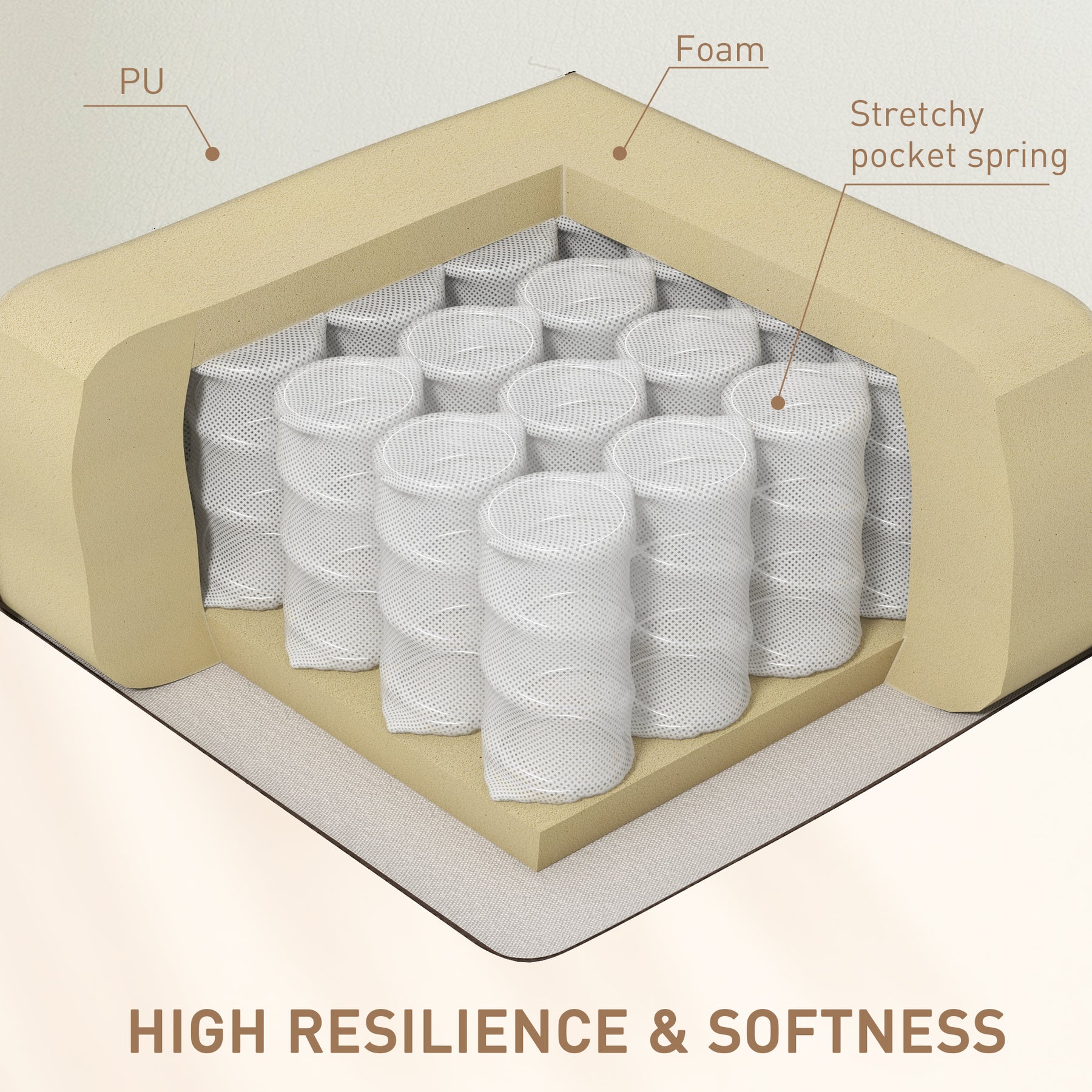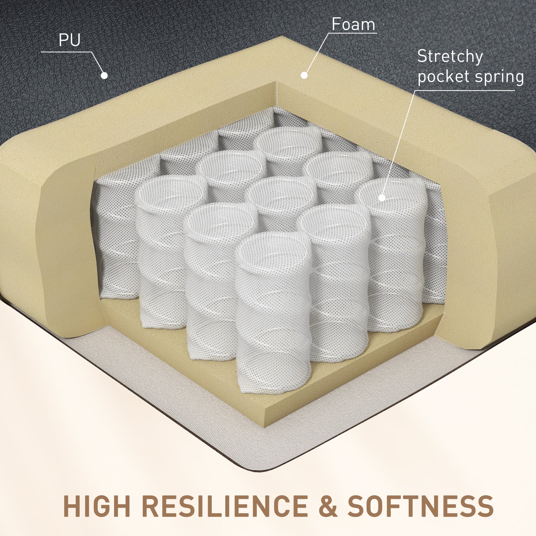 - • Overstuffed, high-density foam padding with a pocket spring system offers a cozy experience