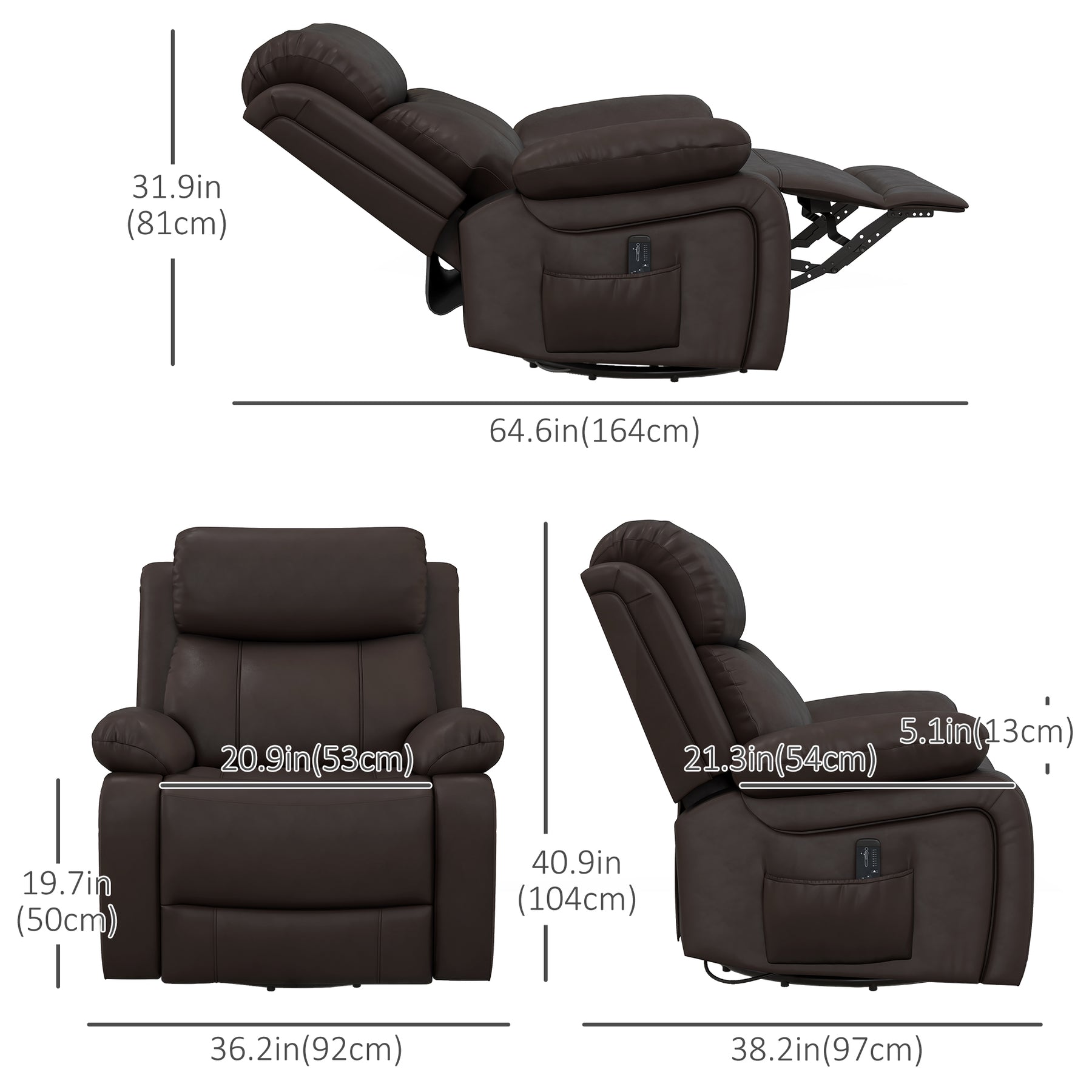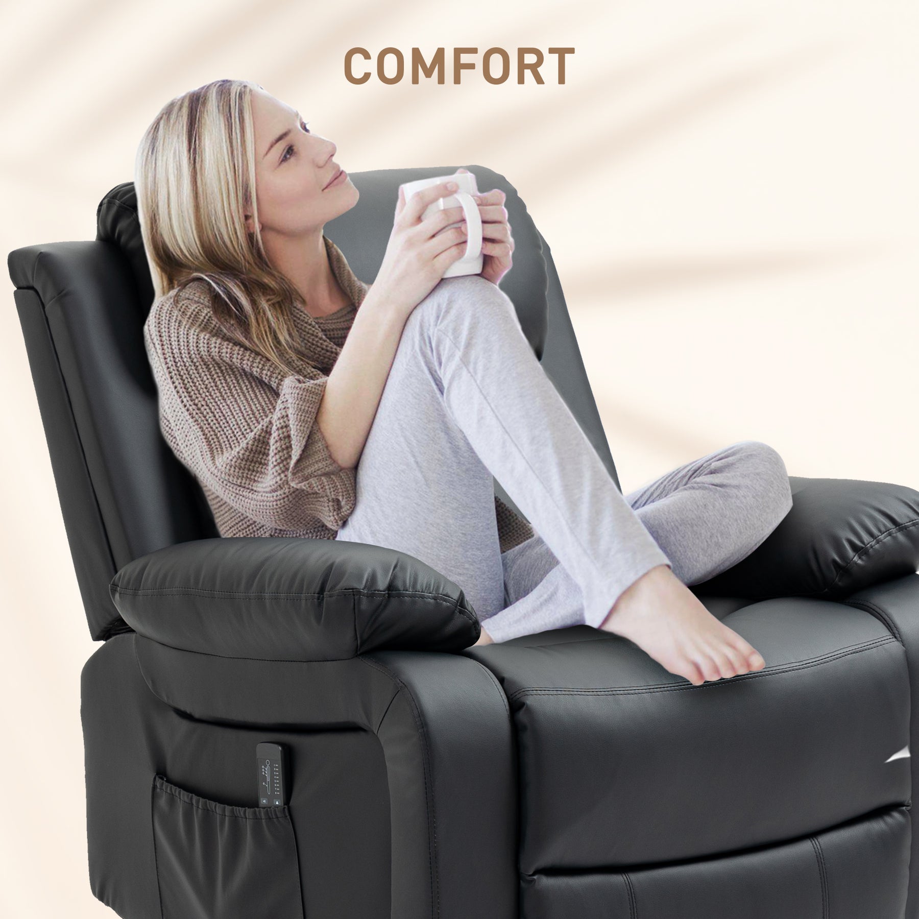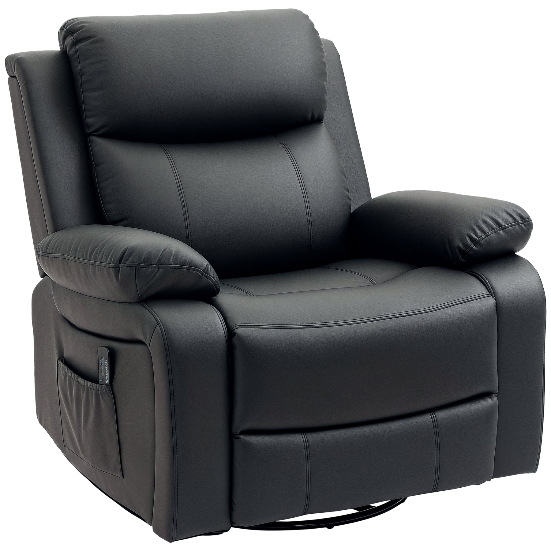 Dive into comfort with your soft recliner chair with massage from HOMCOM! Our fantastic reclining chair offers you a cozy experience. With a 360-degree swivel function, this swivel recliner can rotate in any direction—a wired remote controls eight vibration points on the back, waist, thighs, and legs. The heavily padded armchair can recline 150 degrees, providing superior comfort and support.