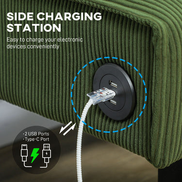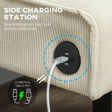 Snuggle up in style with the small loveseat from HOMCOM, a space-saver for any living space. Equipped with handy USB and Type-C ports, this modern sofa keeps your devices charged while you unwind. Corduroy fabric promises cozy moments on the small sofa, adding a touch of comfort and style to your relaxation time. Imagine cuddling on the fabric sofa with your lover wrapped in a blanket on a cold winter night, watching a movie. How wonderful!