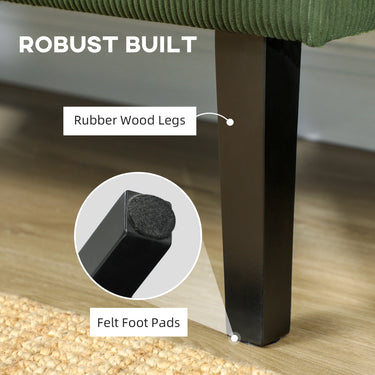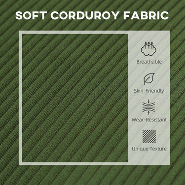 - • Materials: Corduroy (100% Polyester), Eucalyptus Wood, Rubber Wood, Foam