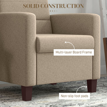 HOMCOM Fabric Accent Chair, Modern Armchair with Seat Cushion and Non-Slip Pads for Living Room, Bedroom, Light Brown