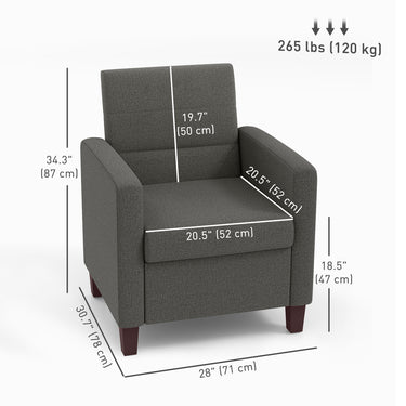 Sink into style and comfort with the HOMCOM Armchair—a chic addition to any living room or bedroom. Wrapped in breathable linen-feel fabric, this chair offers a cozy retreat with its medium-density foam-filled seat cushion and backrest. The removable, zippered cushion makes cleaning a breeze, while the non-slip foot pads help preserve your floors.