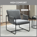 HOMCOM Modern Accent Chair, Upholstered Armchair with Side Pockets and Steel Frame, Comfy Reading Chair for Bedroom, Grey